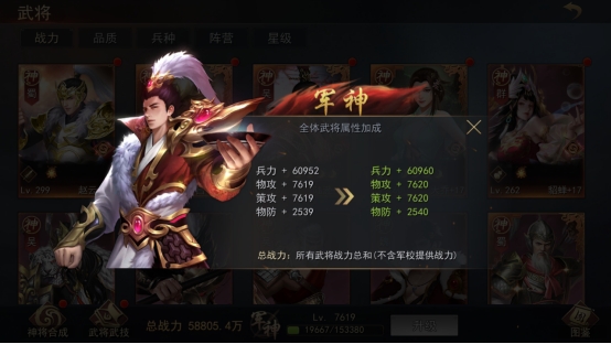 军神对全体武将进行属性加成